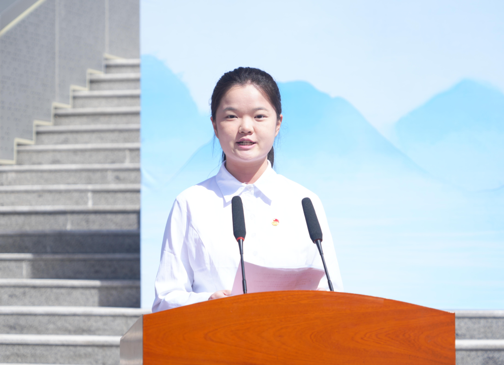 学生代表李璐宇宣读倡议书,她倡议全校师生乘数智之风,展卷同行。承薪火之志,传书香温情。躬身践行,把读书学习作为一种生活态度、一种精神追求,努力成长为有理想、敢担当、能吃苦、肯奋斗的新时代工匠之才。
