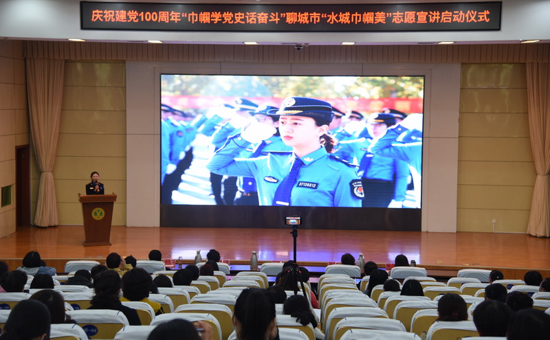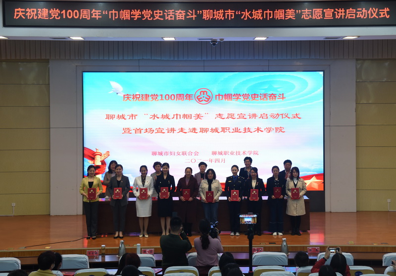 4月22日,由聊城市妇联、聊城职业技术学院联合主办的庆祝建党100周年“巾帼学党史话奋斗”聊城市“水城巾帼美”志愿宣讲启动仪式暨首场宣讲走进聊城职业技术学院活动在聊城职院举办。