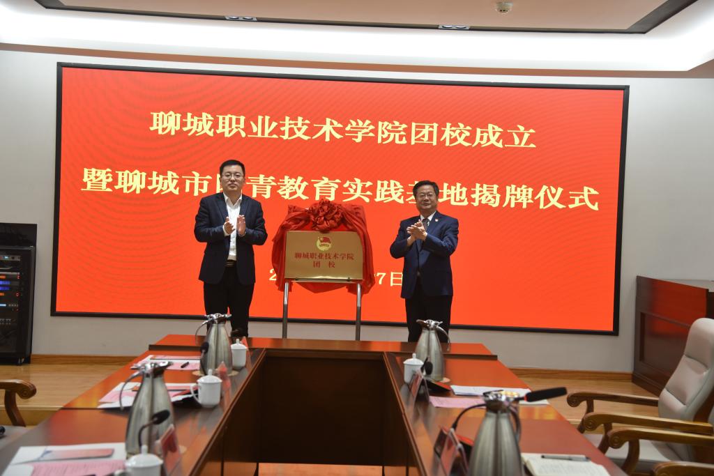 活动第一阶段举行了聊城职业技术学院团校成立暨聊城市团青教育实践揭牌仪式。仪式开始后,与会领导共同观看了《聊城职业技术学院宣传片》,高杉代表学校党委致欢迎辞,刘雪巍就学校共青团工作近5年来取得的成绩和团员青年党史学习教育开展情况向团市委进行了详细汇报;于繁昌宣读了《关于同意成立聊城职业技术学院团校的批复》,徐保亮、高杉共同为“聊城职业技术学院团校”、“聊城市团青教育实践基地”揭牌。