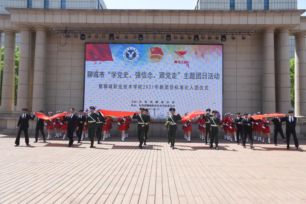 4月27日上午,聊城市“学党史、强信念、跟党走”主题团日活动暨新团员标准化入团仪式在聊城职业技术学院成功举办。团市委书记徐保亮、副书记于繁昌、组织部部长满政、办公室主任韩晓、聊城市青少年综合服务中心主任刘凯,学校党委委员、副院长高杉,团委书记杨超出席活动。学校团委、各系党总支、团总支负责人,学生干部代表2000余人参加活动。党委委员、学工部部长刘雪巍主持。