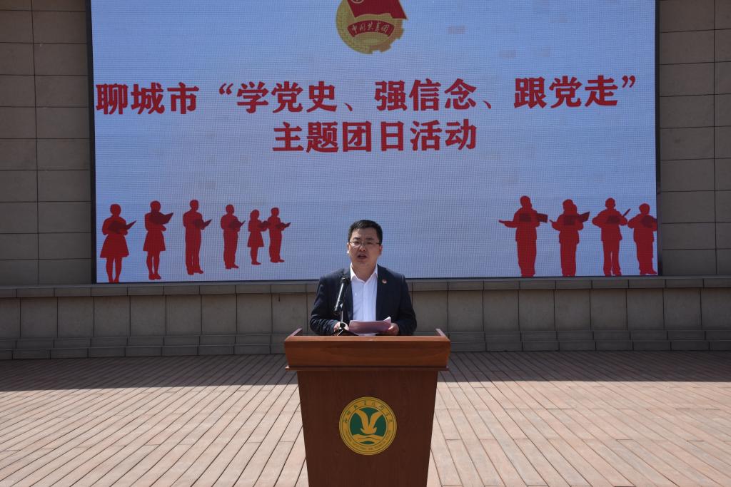 团市委书记徐保亮发表讲话。他指出,此次举办的“学党史、强信念、跟党走”主题团日活动,全体团员要认真落实团中央关于团员青年党史学习要求,把党史学习与庆祝建党100周年统一起来,贯通全年。他代表共青团聊城市委对100名新入团的同学表示了祝贺,并希望全校团员高擎信仰之旗、树立坚定的理想信念;高扬信念之帆、练就过硬的技能本领;高举创新之炬、书写精彩的奋斗华章;高奏时代强音、涵养民族复兴的青年担当,在这个伟大的时代创造新的辉煌。
