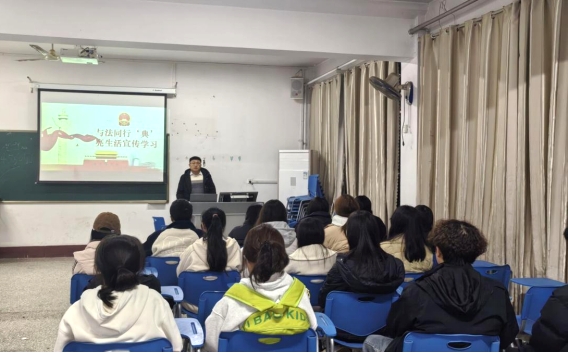 为深入贯彻落实习近平法治思想,营造尊法、学法、守法、用法的良好法治氛围,11月14日,大学生法律协会开展“与‘法’同行‘典’亮生活”主题活动,社团指导教师胡少栋及社团部分学生参加本次活动。
