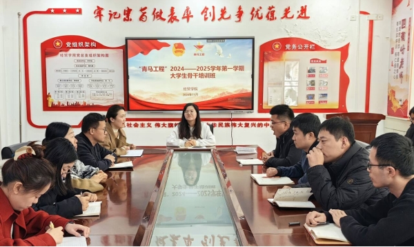 为培养信仰坚定、能力突出、素质优良、作风过硬的青年政治骨干,经贸学院11月19日开展“青马工程”2024-2025学年第一学期学生骨干培训班第四讲。经贸学院团总支副书记苏飞、全体辅导员及30余名学生干部参加培训。
