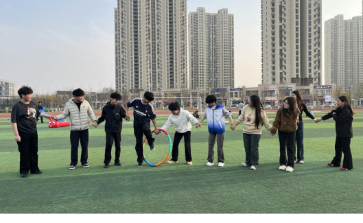 活动现场,“龙狮”和“思辨青春”社团共同负责协调,毛毛虫竞速与手牵手呼啦圈传递两项活动有序开展。同学们分组协作、奋勇争先,在趣味毛毛虫中步调一致、同心向前,在呼啦圈传递中手拉手默契配合,欢声笑语间释放了学习压力,也在互动协作中拉近了心灵距离,充分展现了团结奋进、互帮互助、积极向上的良好风貌。
