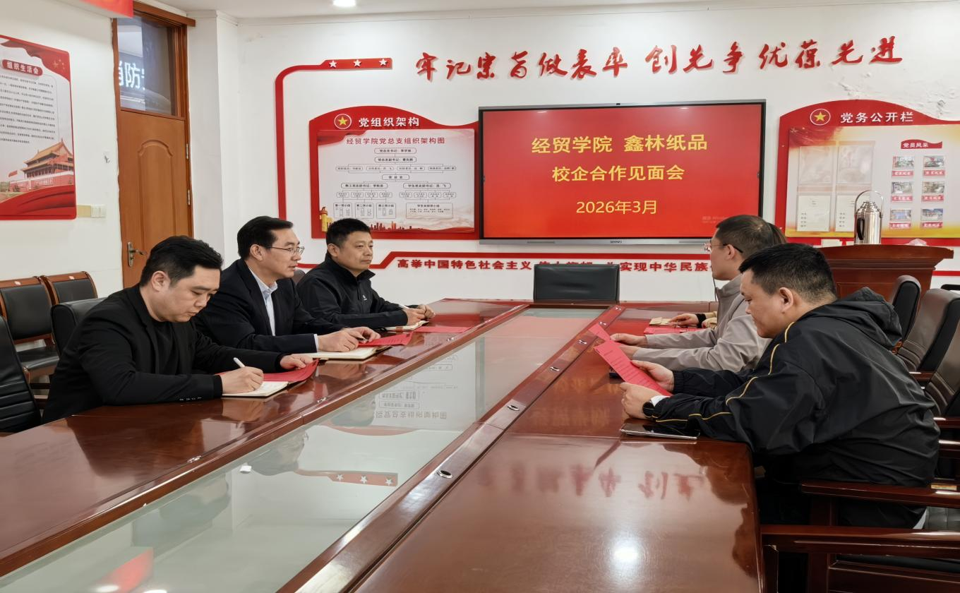 为精准对接企业用人需求,深化产教融合协同育人机制,拓宽学生实习就业渠道,3月31日,经贸学院与山东鑫林纸制品有限公司举行校企交流座谈会。经贸学院院长李学锋、党总支副书记曹先鹏、副院长李新泉及企业代表出席本次座谈,双方围绕校企深度合作、现代学徒制人才培养、学生实习就业对接等核心议题展开深入交流,共商产教融合、协同育人新路径。