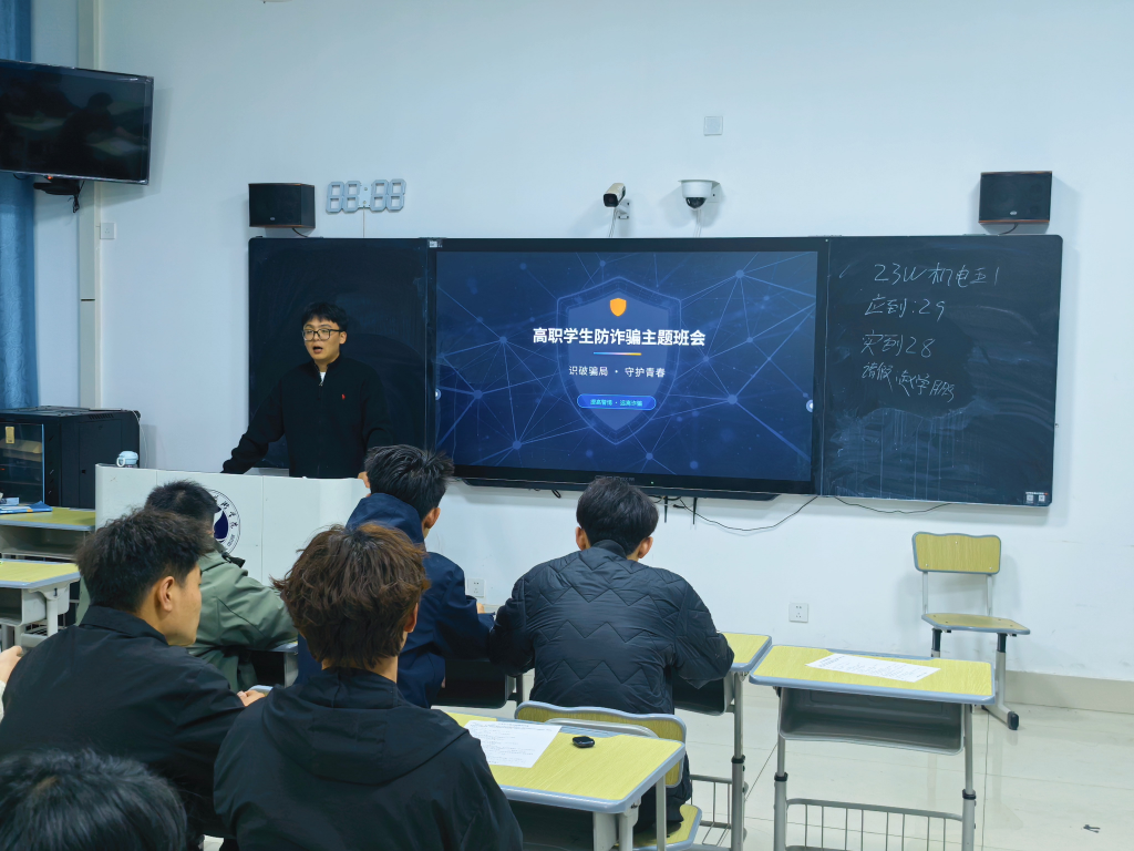 多维联动,线上线下全覆盖。活动期间,学院以班级为单位召开防诈骗主题班会,通过播放宣传视频、剖析真实案例,引导学生树立正确金钱观,坚决抵制诈骗行为;组织师生签署防诈骗倡议书,强化责任意识,营造“人人知反诈、人人守反诈”的良好氛围。线上,学院持续推送反诈推文,围绕刷单返利、国家反诈中心APP使用教程等内容,普及“不轻信、不透露、不转账”反诈口诀,让线上反诈阵地持续发力。