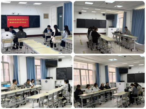 活动中,各企业HR向学生们介绍了企业发展历程、核心业务板块、企业文化理念、人才培养体系及岗位晋升通道,重点围绕医药行业当下发展现状、未来就业前景、薪资待遇等同学们关心的内容展开详细解读。交流互动环节,企业经理结合自身行业经验,为同学们答疑解惑、分享职场心得,给出针对性的就业准备建议。在面试环节,面试官依据学生简历及结构化问题展开考察,双方围绕实习实践经历、岗位能力需求及企业未来发展前景等话题进行了交流。